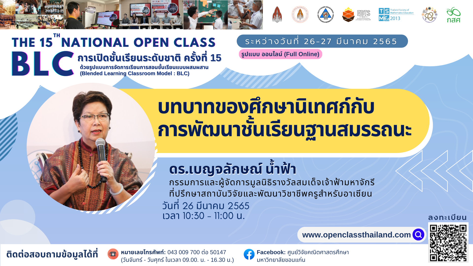 การเปิดชั้นเรียนระดับชาติ ครั้งที่ 15 (The 15th National Open Class) ด้วยรูปแบบการจัดการเรียนการสอนแบบผสมผสาน (Blended Learning Classroom Model: BLC)