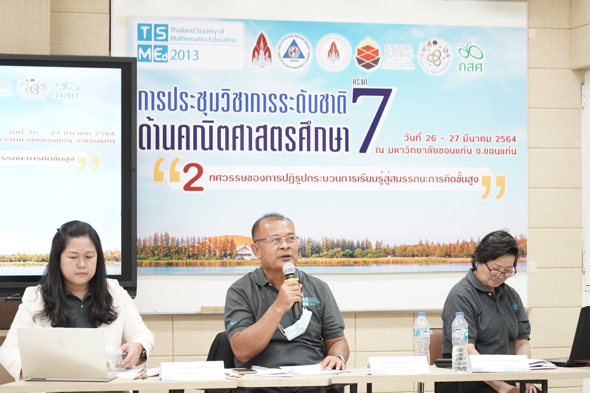 ในวันที่ 26-27 มีนาคม 2564 สมาคมคณิตศาสตรศึกษา จัดการประชุมวิชาการด้านคณิตศาสตรศึกษา ครั้งที่ 7 ในหัวข้อ “2 ทศวรรษของการปฏิรูปกระบวนการเรียนรู้สู่สมรรถนะการคิดขั้นสูง” ณ มหาวิทยาลัยขอนแก่น จังหวัดขอนแก่น โดยได้รับการสนับสนุนจาก ศูนย์วิจัยคณิตศาสตรศึกษา มหาวิทยาลัยขอนแก่น มูลนิธิการศึกษาเพื่อการพัฒนาทักษะการคิด กองทุนเพื่อความเสมอภาคทางการศึกษา สถาบันรับรองสมรรถนะทางคณิตศาสตร์แห่งประเทศไทย และสถาบันวิจัยและพัฒนาวิชาชีพครูสำหรับอาเซียน มหาวิทยาลัยขอนแก่น ซึ่งในกิจกรรมประกอบด้วย
