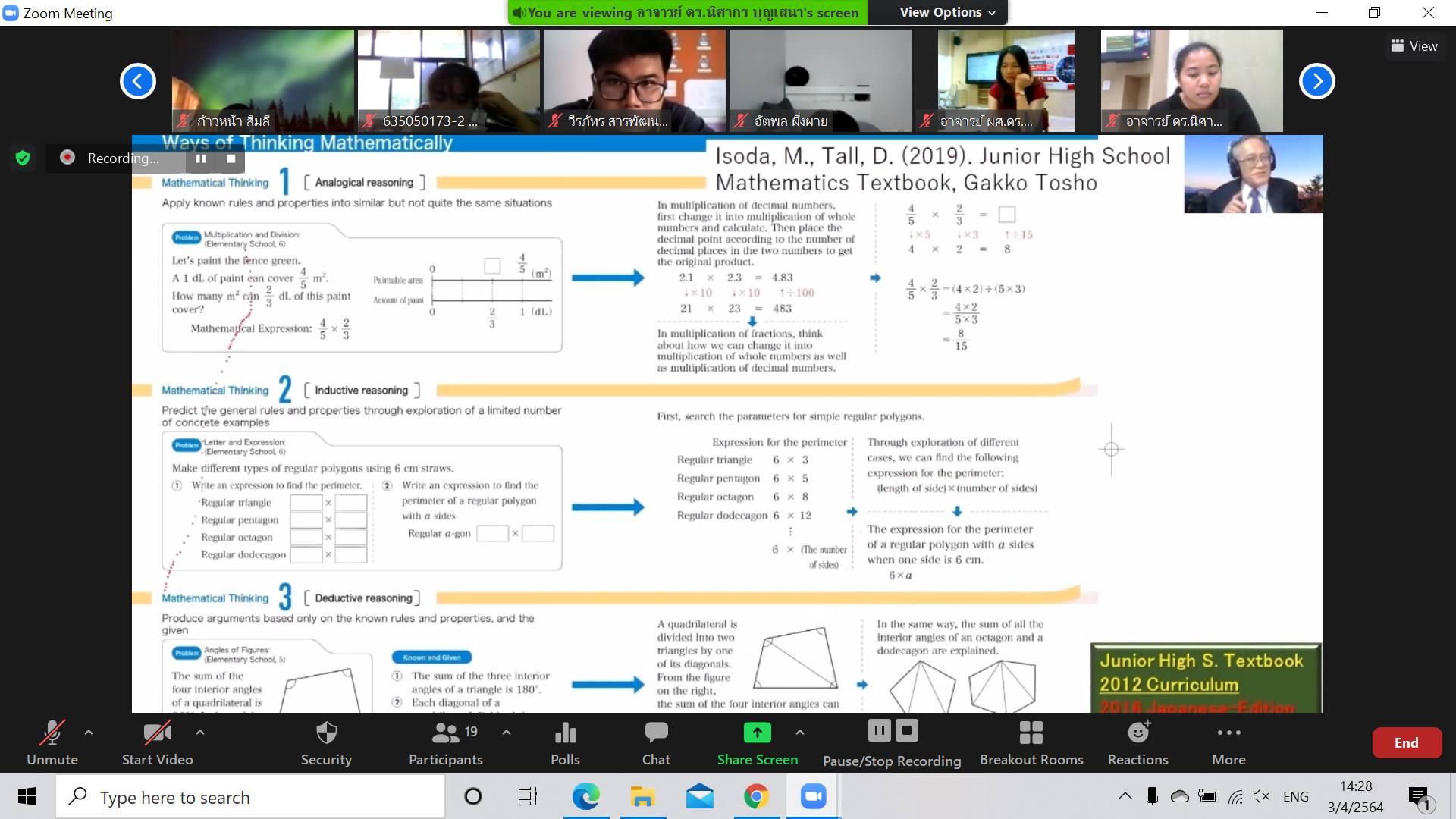 โครงการ SEAMEO School Network Teaching Mathematics to Develop Mathematical Thinking as Higher Order Thinking: How do you teach? Why?