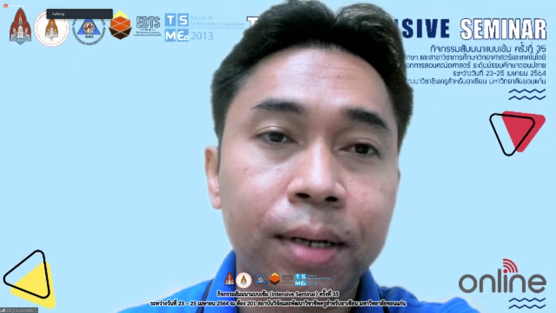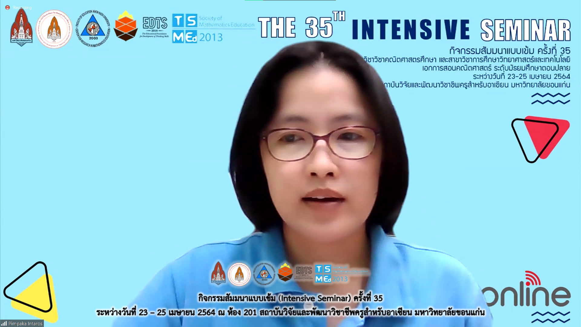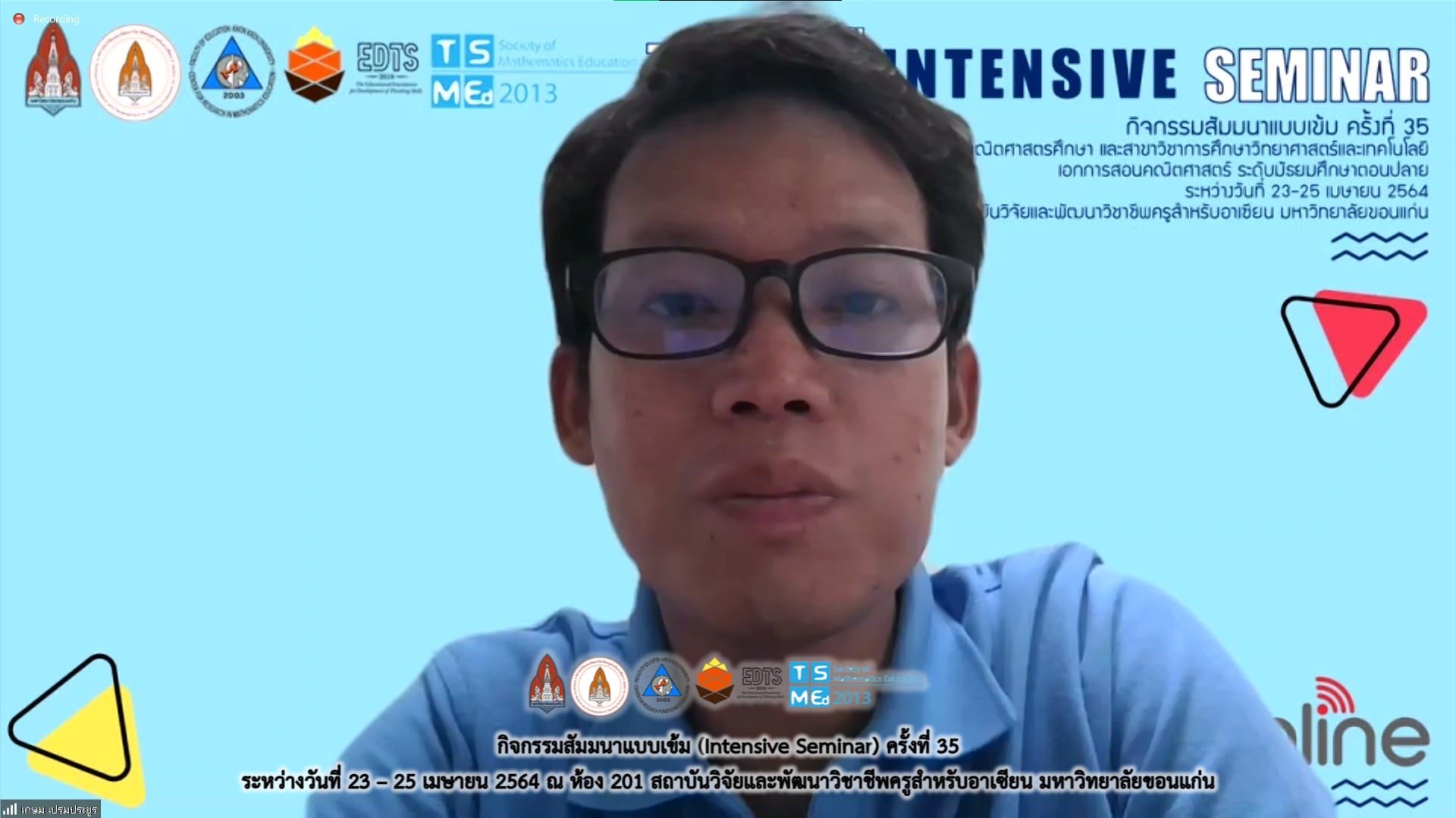 ศูนย์วิจัยคณิตศาสตรศึกษาร่วมกับสาขาวิชาคณิตศาสตรศึกษาจัดกิจกรรม Intensive Seminar in Mathematics Education ครั้งที่ 35 ในรูปแบบออนไลน์ ระหว่างวันที่ 23 - 25 เมษายน พ.ศ. 2564 ณ สถาบันวิจัยและพัฒนาวิชาชีพครูสำหรับอาเซียน (Online และ On-site) โดยมีวัตถุประสงค์ เพื่อพัฒนาการทำวิจัยควบคู่กับการฝึกทำงานและเรียนรู้ของนักศึกษาร่วมกับผู้อื่น โดยมีผู้เข้าร่วมประกอบด้วยคณาจารย์ นักศึกษาบัณฑิตศึกษา และศิษย์เก่าสาขาวิชาคณิตศาสตรศึกษา ทั้งหมดร่วมกิจกรรมกว่า 100 คน ซึ่งกิจกรรมในครั้งนี้ประกอบด้วย