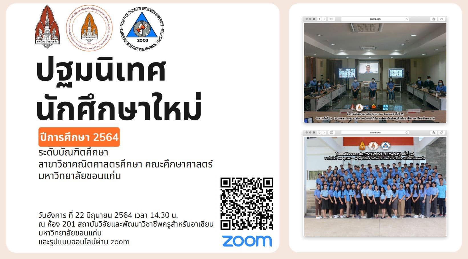 กิจกรรมปฐมนิเทศนักศึกษาใหม่ระดับบัณฑิตศึกษา ปีการศึกษา 2564 ในวันที่ 22 มิถุนายน 2564 ณ สถาบันวิจัยและพัฒนาวิชาชีพครูสำหรับอาเซียน ห้อง 201 และออนไลน์ผ่าน zoom โดยมีคณาจารย์ประจำสาขาวิชาคณิตศาสตรศึกษากล่าวต้อนรับและมอบแนวทางในการเตรียมความพร้อมก่อนเปิดภาคการศึกษา ซึ่งในการนี้มีนักศึกษาใหม่เข้าร่วมกิจกรรมทั้งหมด 30 คน ประกอบด้วย นักศึกษาระดับปริญญาโท 26 คน และนักศึกษาระดับปริญญาเอก 4 คน โดยมีกิจกรรมดังต่อไปนี้
