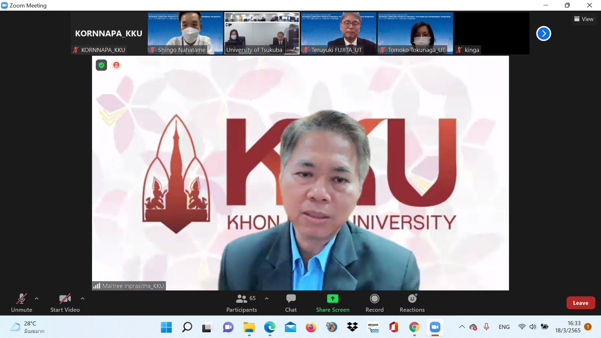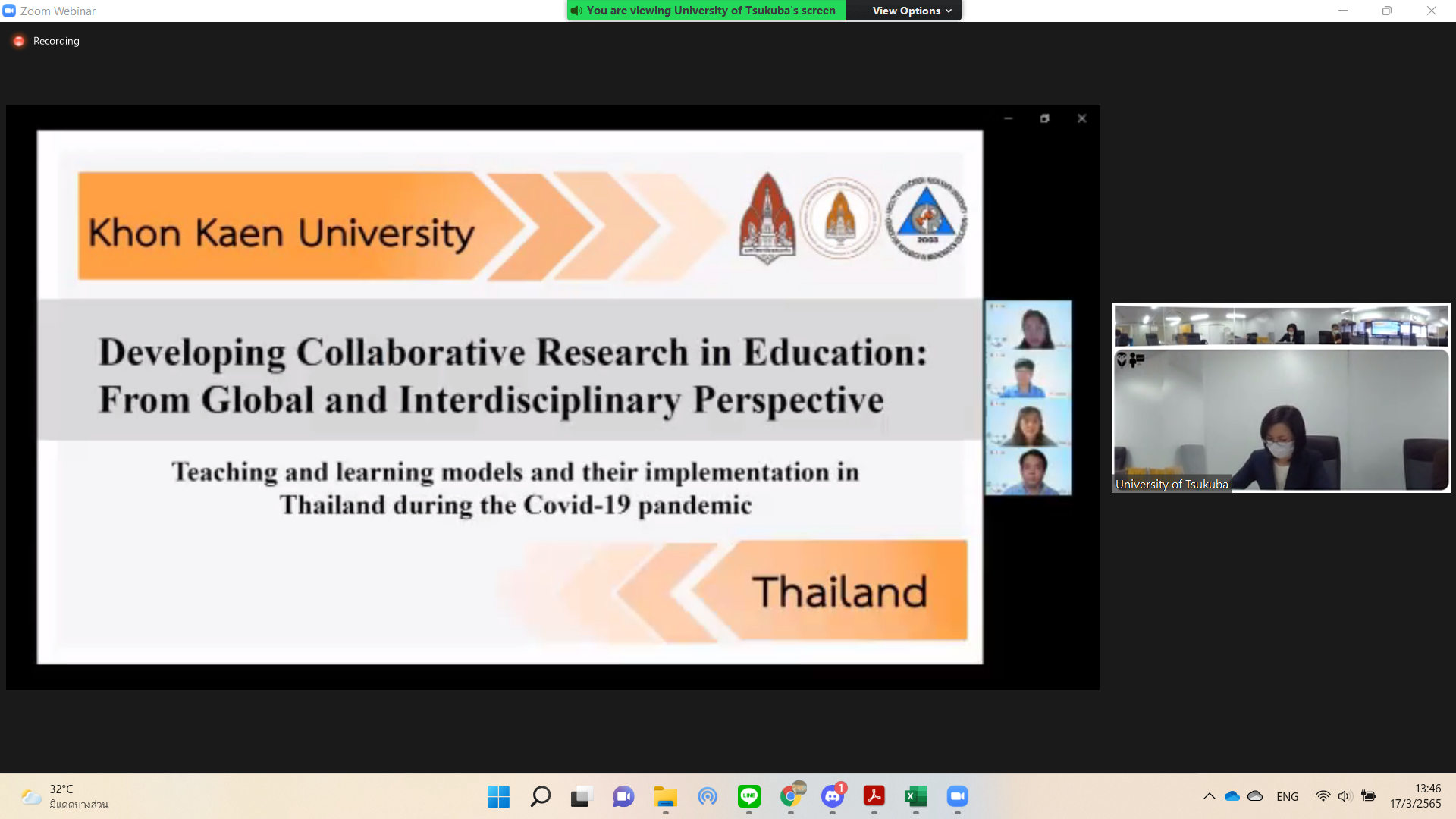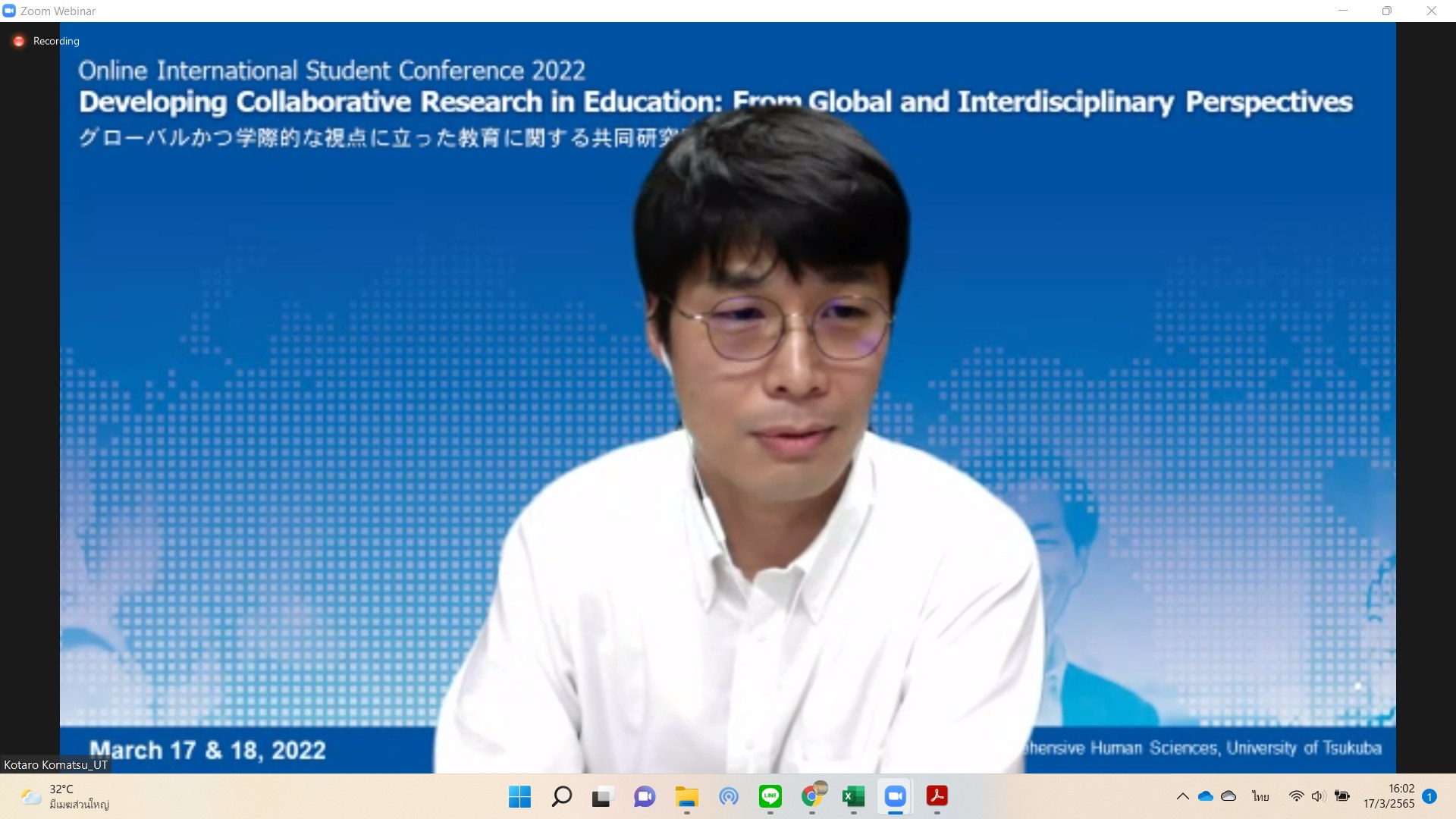 เมื่อวันที่ 17 - 18 มีนาคม 2565 เวลา 13:30 – 17:00 น. ตามเวลาประเทศไทย นักศึกษาระดับบัณฑิตศึกษา สาขาวิชาคณิตศาสตรศึกษา พร้อมคณาจารย์ ได้เข้าร่วมการประชุมวิชาการนานาชาติ 2022 Online International Student Conference ในหัวข้อ “Developing Collaborative Research in Education: From Global and Interdisciplinary Perspectives” ซึ่งจัดขึ้นโดย Degree Programs in Education Graduate School of Comprehensive Human Sciences, University of Tsukuba, Japan และสนับสนุนการจัดงานโดย University of Tsukuba, Center for Research on International Cooperation in Educational Development (CRICED) กิจกรรมประกอบด้วย การสัมมนาออนไลน์ร่วมกันของนักศึกษาระดับบัณฑิตศึกษา จาก 7 มหาวิทยาลัยดังต่อไปนี้